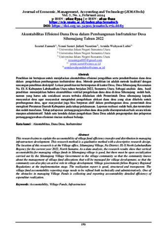 Zannah, Izzatul (2024) Akuntabilitas Efisiensi Dana Desa dalam Pembangunan Insfratuktur Desa Silumajang Tahun 2022. Journal of Economic, Management, Accounting and Technology (JEMATech).