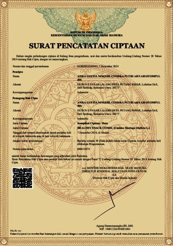 Anisa Gustia Ningsih (2024) Surat Pencatatan Ciptaan Healthy Snack COMEL (Cookies Moringa Oleifera L.). EC002024245942.