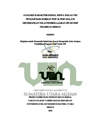 Risnanti, Tiara (2024) "Analisis Karakter Sosial Siswa Kelas VIII Penggemar Korean POP (K-POP) Dalam Menerapkan Nilai Pembelajaran IPS DI SMP NEGERI 43 MEDAN. Diploma thesis, UIN Sumatera Utara.