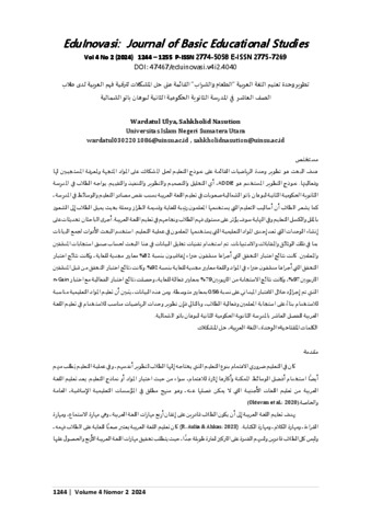 Ulya, Wardatul (2024) تطوير وحدة تعليم اللغة العربية "الطعام والشراب" القائمة على حل املشكالت لترقية فهم العربية لدى طالب الصف العاشر فياملدرسةالثانويةالحكومية الثانيةلبوهان باتو الشمالية. EduInovasi: Journal of Basic Educational Studies, 4 (2).