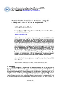 Laoly, Siti Khadijah (2024) Optimization Of Peanut Bread Production Using The Cutting Plane Method at UD. Hj. Eliya Lubis. ASSET: Advance Sustainable Science, Engineering and Technology, 6 (3).