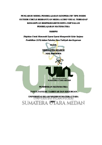 Qulsum, Nesaa Ovia (2024) Pengaruh Penggunaan Model Pembelajaran Kooperatif Tipe Inside Ouside Circle Berbanruan Audio Visual Terhadap Kemampuan Berpikir Kritis Siswa SMP Dalam Pembelajaran Matematika. Skripsi thesis, UIN Sumatera Utara Medan.