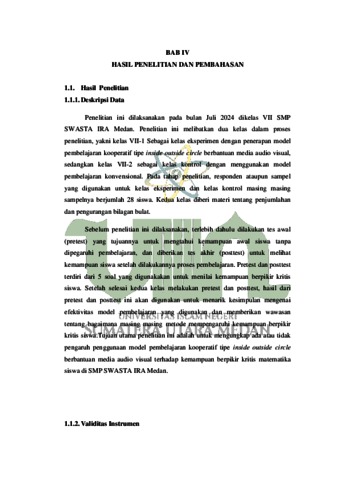 Penelitian ini bertujuan untuk mengetahui pengaruh penggunaan model Pembelajaran Kooperatif Tipe Inside Outside Circle Berbantuan Media Audio Visual dalam Pembelajaran Matematika Pada Siswa Kelas VII SMP Swasta Ira Medan Tahun Ajaran 2024/2025. Pendekatan penelitian ini adalah degan pendekatan kuantitatif dengan penelitian quasi eksperiment dengan desain penelitian pretest-posttest control group design. Populasi penelitian adalah siswa kelas VII SMP Swasta Ira dengan jumlah sampel kelas eksperimen 28 siswa dan kelas kontrol 28 siswa. Teknik pengambilan sampel didasarkan pada kriteria yang diterapkan yaitu simple random sampling. Teknik pengumpulan data yaitu dengan melakukan test pretest dan posttest yang kemudian data diolah menggunakan SPSSS. Kemudian data yang diperoleh dan diolah menggunakan SPSS yang menunjukan adanya perbedaan signifikan antara kelas eksperimen dan kelas kontrol. Analisis data menunjukkan bahwa model IOC berbantuan media audiovisual memiliki dampak positif terhadap hasil belajar siswa. Hasil uji deskriptif statistic menunjukan kelas eksperimen mengalami peningkatan rata rata (Mean) dari nilai 57.68 pada pretest menjadi 86.61 pada posttest. Ini menunjukan adanya peningkatan yang signifikan dalam peningkatan kemampuan berpikir kritis siswa setelah dilakukan model pembelajaran kooperatif tipe inside outside circle berbantuan media audiovisual. Dalam kelas kontrol juga mengalami peningkatan rata rata nilai dari 60.36 pada pretest menjadi 81.61 pada posttest, namun peningkatan ini lebih kecil dibandingkan dengan kelas eksperimen. Berdasarkan uji Independent samples t- test menunjukan bahwa signifikasi sebesar 0.024 pada taraf signifikasi α = 0.05. Oleh karena itu karena taraf signifikasi two sided p sebesar 0.024 yang artinya kurang dari 0.05 maka Ha diterima dan H0 ditolak. Oleh karena itu dapat disimpulkan bahwa model pembelajaran kooperatif tipe inside outside circle berdampak terhadap kemampuan berpikir kritis siswa. Berdasarkan hasil perhitungan uji N-Gain tersebut menunjukan bahwa nilai N-gain score untuk kelas eksperimen sebesar 0.6910 dalam kriteria gain yang telah ditetapkan termasuk kedalam peningkatan sedang, berdasarkan N-gain persen untuk kelas eksperimen adalah sebesar 69.10% termasuk kedalam kategori cukup efektif dengan nilai score gain minimal 23 % dam maksimal 100%. Begitu juga dalam kelas kontrol, N-gain score dalam kelas kontrol sebesar 0.5329 yang termasuk dalam peningkatan sedang dalam kriteria gain. Berdasarkan N-gain persen untuk kelas kontrol adalah sebesar 53.29% yang termasuk kedalam kategori kurang efektif dengan nilai score gain minimal 13% dan maksimal 90%, dikategorikan kurang efektif dengan nilai gain minimal 13% dan maksimal 90%