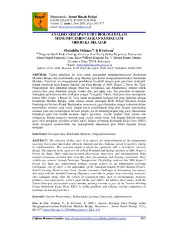 Siahaan, Shalsabila and Khairuna, Khairuna (2024) ANALISIS KESIAPAN GURU BIOLOGI DALAM MENGIMPLEMENTASIKAN KURIKULUM MERDEKA BELAJAR. Bioscientist : Jurnal Ilmiah Biologi, 12 (1). pp. 865-877. ISSN E-ISSN 2654-4571; P-ISSN 2338-5006
