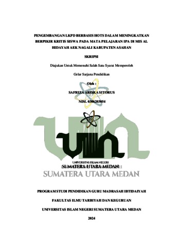 Sitorus, Safriza Ariska (2024) Pengembangan LKPD Berbasis Hots Dalam Meningkatkan Berpikir Kritis Siswa Pada Mata Pelajaran Ipa Di Mis Al Hidayah Aek Nagali Kabupaten Asahan. Skripsi thesis, Universitas Islam Negeri Sumatera Utara Medan.