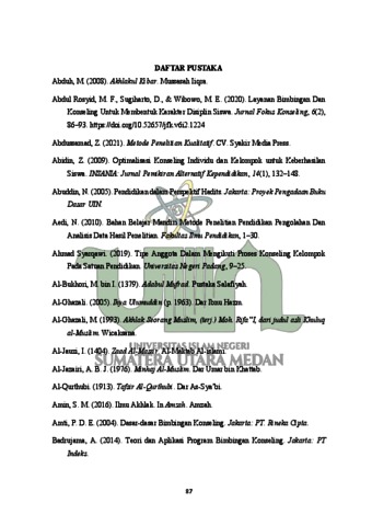 Mahfidz, Irgan Khairul (2024) Manfaat Layanan Konseling Individu dan Layanan Konseling Kelompok dalam Membina Akhlak Siswa MTSN 1Deli Serdang. Masters thesis, UIN Sumatera Utara Medan.