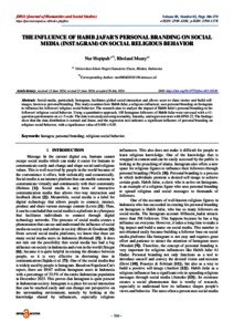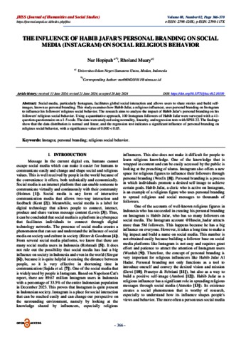 Hopipah, Nur (2024) The Influence Of Habib Jafar's Personal Branding On Social Media (Instagram) On Social Religious Behavior. JHSS (Journal of Humanities and Social Studies), 8 (2). pp. 366-370.