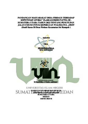 Hafilla, Mughni (2024) Pandangan Masyarakat Desa Firdaus Terhadap Keputusan Ijtima' Ulama Komisi Fatwa Sesumatera Utara Tahun 2022 Tentang Penutupan Jalan Umum Untuk Keperluan Walimatul 'Ursy (Studi Kasus di Desa Firdaus Kecamatan Sei Rampah). Skripsi thesis, UIN Sumatera Utara Medan.