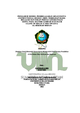 Lubis, Fatimah (2022) Pengaruh Model Meaningful Instructional Design (MID) Terhadap Hasil Belajar Dan Sikap Peduli Lingkungan pada Materi Limbah dan Daur Ulang di Kelas X SMA Swasta Al-Hikmah Medan. Diploma thesis, UIN Sumatera Utara.