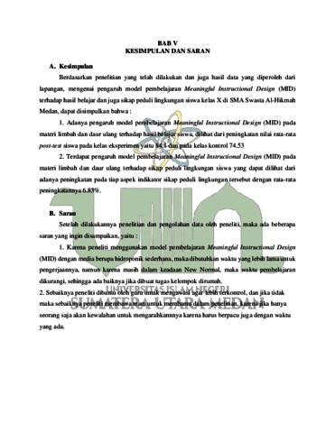 Pengaruh Model Meaningful Instructional Design (MID) Terhadap Hasil Belajar Dan Sikap Peduli Lingkungan pada Materi Limbah dan Daur Ulang di Kelas X SMA Swasta Al-Hikmah Medan