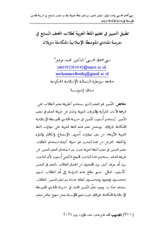 تطبيق التمييز يف تعليم اللغة العربية لطالب الصف السابع في مدرسة املنادي املتوسطة اإلسالمية املتكاملة ماريالن