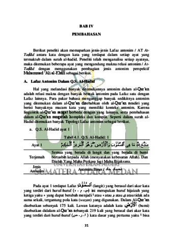 Syahadi, Fajar (2024) Tipologi Lafaz Antonim (At-Taḍād) Dalam Surah Al- Hadid Perspektif Muhammad ‘Ali al-Khūlī. Skripsi thesis, UIN Sumatera Utara Medan.