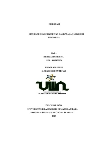 EFISIENSI DAN EFEKTIFITAS BANK WAKAF MIKRO DI INDONESIA