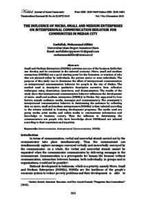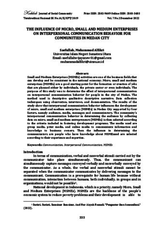 Saefullah, Saefullah (2022) The Influence of Micro, Small and Medium Enterprises on Interpersonal Communication Behavior for Communities in Medan City. Kabilah: Journal of Social Community, 7 (2).