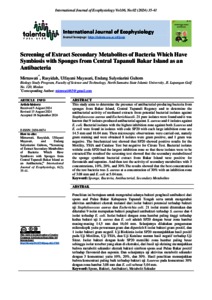 Mirnawati, Mirnawati (2024) Screening of Extract Secondary Metabolites of Bacteria Which Have Symbiosis with Sponges from Central Tapanuli Bakar Island as an Antibacteria. International Journal of Ecophysiology, 6 (2). pp. 35-41.