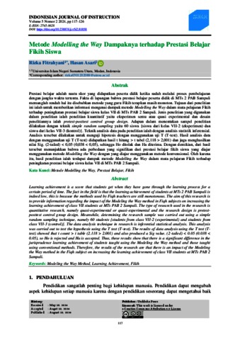 Fitrahyani, Rizka Metode Modelling the Way Dampaknya terhadap Prestasi Belajar Fikih Siswa. INDONESIAN JOURNAL OF INSTRUCTION.