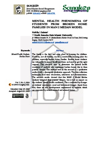 Nabila, Nabila (2024) Mental Health Phenomena of Students from Broken Home Families in Man 2 Medan Model. Sangkép: Jurnal Kajian Sosial Keagamaan.