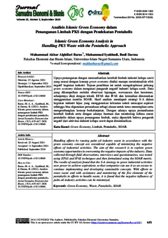 Barus, Muhammad Akbar Alghifari (2024) Analisis Islamic Green Economy dalam Penanganan Limbah PKS dengan Pendekatan Pentahelix. Jurnal Samudra Ekonomi dan Bisnis, 15 (3).