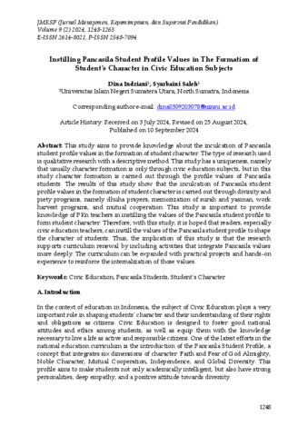 Instilling Pancasila Student Profile Values in The Formation of Student’s Character in Civic Education Subjects