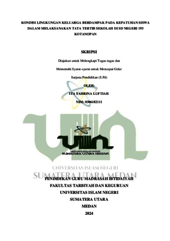 Luftiah, Ita Fahrina (2024) Kondisi Lingkungan Keluarga Berdampak pada Kepatuhan Siswa dalam Melaksanakan Tata Tertib Sekolah di SD Negeri 193 Kotanopan. Skripsi thesis, UIN Sumatera Utara Medan.