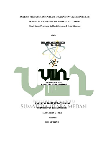 Nasution, Siti Aisyah (2022) Analisis Penggunaan Aplikasi Cashzine Untuk Memperoleh Penghasilan Perspektif Wahbah Az-Zuhaili (Studi Kasus Pengguna Aplikasi Cashzine di Kota Kisaran). Diploma thesis, UIN Sumatera Utara.