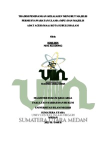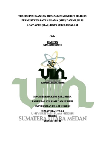 Ismudin, Ismudin (2023) Tradisi Peminangan Melalaken Menurut Majelis Permusyawaratan Ulama (MPU) dan Majelis Adat Aceh (MAA) Kota Subulussalam. Masters thesis, UIN Sumatera Utara Medan.