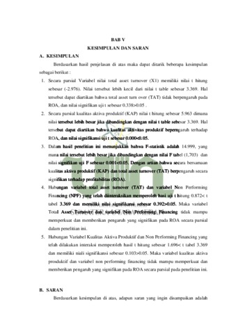 Pengaruh Total Asset Turnover (Tat) Dan Kualitas Aktiva Produktif (Kap) Terhadap Profitabilitas (Roa) Dengan Non Performing Financing Sebagai Variabel Moderasi Pada Bank Umum Syariah Di Indonesia Periode 2019-2023