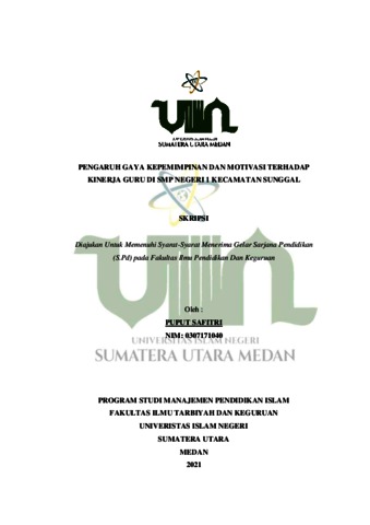 Safitri, Puput (2024) Pengaruh Gaya Kepemimpinan dan Motivasi Terhadap Kinerja guru SMP Negeri 1 Sunggal. Diploma thesis, UIN Sumatera Utara.