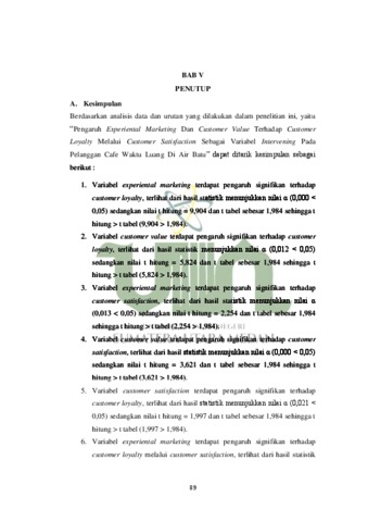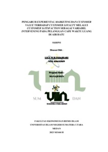 Indahsari, Lily Nur (2023) Pengaruh Experiental Marketing dan Customer Value terhadap Customer Loyalty melalui Cutomer Satisfaction sebagai Variabel Intervening Pada Pelanggan Cafe Waktu Luang di Air Batu. Skripsi thesis, UIN Sumatera Utara Medan.
