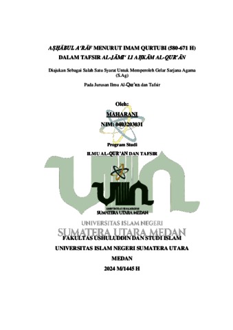 Maharani, Maharani (2024) Aṣḥābul A‘rāf Menurut Imam Qurtubi (580-671 H) Dalam Tafsir Al-Jāmi‘ Li Aḥkām Al-Qur’ān. Diploma thesis, UIN Sumatera Utara.
