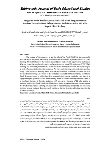 Fitri, Ridho Ramadhani (2024) Pengaruh Model Pembelajaran Think Talk Write dengan Bantuan Gambar Terhadap Hasil Belajar Bahasa Arab Siswa Kelas VIII MTs Negeri 1 Deli Serdang. EduInovasi: Journal of Basic Educational Studies.