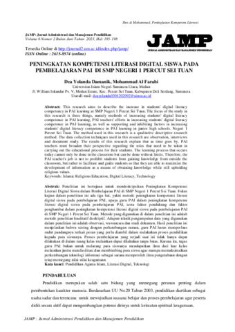 Yolanda Damanik, Dea Peningkatan Kompetensi Literasi Digital Siswa Pada Pembelajaran Pai Di Smp Negeri 1 Percut Sei Tuan. JAMP: Jurnal Administrasi dan Manajemen Pendidikan.