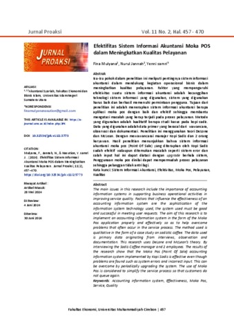 Mulyana, Fina (2024) Efektifitas Sistem Informasi Akuntansi Moka POS dalam Meningkatkan Kualitas Pelayanan. Jurnal Proaksi.