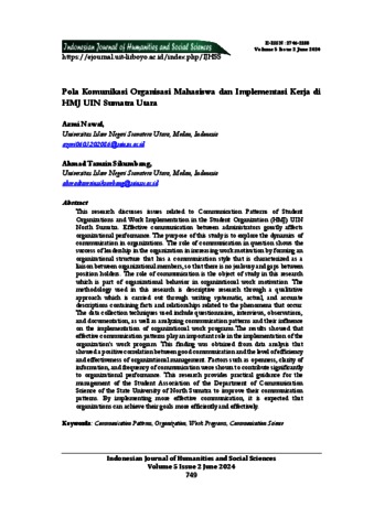 Nawaf, Azmi (2024) Pola Komunikasi Organisasi Mahasiswa dan Implementasi Kerja di HMJ UIN Sumatra Utara. Indonesian Journal of Humanities and Social Sciences.