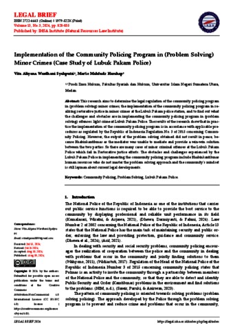 Syahputri, Vita Aliyana Wardhani (2024) Implementation of the Community Policing Program in (Problem Solving) Minor Crimes (Case Study of Lubuk Pakam Police). LEGAL BRIEF.