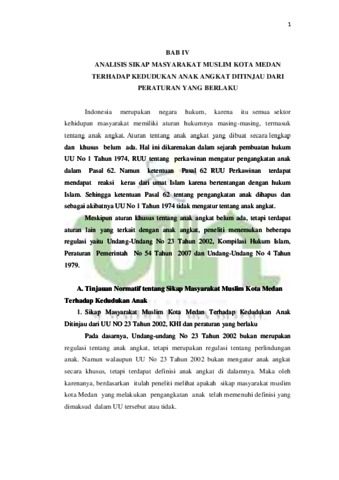 Sikap Masyarakat Muslim Kota Medan Terhadap Kedudukan Anak Angkat (Ditinjau Dari Uu Nomor 23 Tahun 2002, Kompilasi Hukum Islam Dan Peraturan Yang Berlaku)