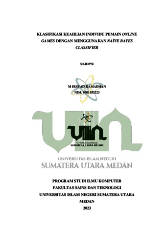 Ramadhan, M Irsyad (2023) Klasifikasi Keahlian Individu Pemain Online games dengan Menggunakan Naïve Bayes Classifier. Skripsi thesis, UIN Sumatera Utara Medan.