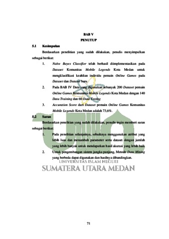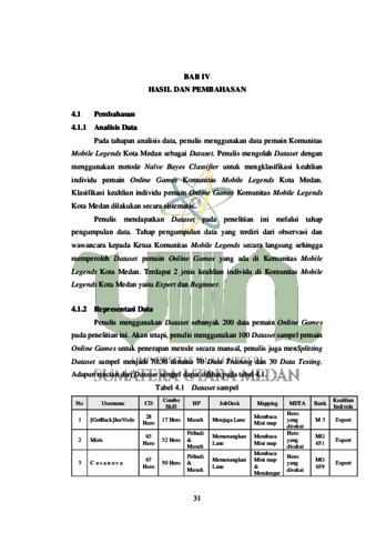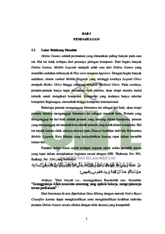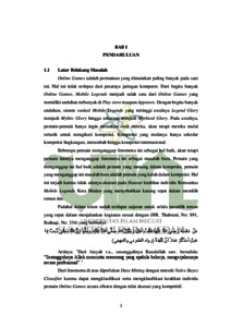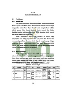 Skripsi ini bertujuan untuk mengklasifikasi keahlian individu pemain Online Games di Komunitas Mobile Legends Kota Medan menggunakan metode Naïve Bayes Classifier. Dataset sampel yang digunakan adalah data dari aktivitas bermain Mobile Legends para pemain yang diambil dari Komunitas Mobile Legends Kota Medan. Metode Naïve Bayes Classifier digunakan untuk mengklasifikasi keahlian individu berdasarkan data aktivitas yang telah dikumpulkan. Hasil penelitian menunjukkan bahwa metode Naïve Bayes Classifier dapat digunakan untuk mengklasifikasi keahlian individu dalam bermain Mobile Legends dengan akurasi yang cukup tinggi di komunitas Kota Medan.