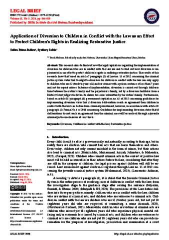 Indira, Safira Prima (2024) Application of Diversion to Children in Conflict with the Law as an Effort to Protect Children's Rights in Realizing Restorative Justice. Legal Brief.