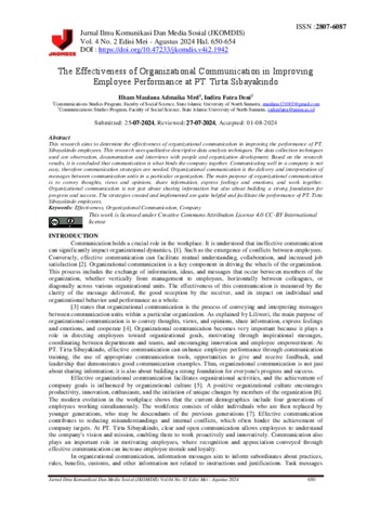 Mrd, Ilham Maulana Admaika (2024) The Effectiveness of Organizational Communication in Improving Employee Performance at PT. Tirta Sibayakindo. Jurnal Ilmu Komunikasi Dan Media Sosial (JKOMDIS).