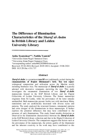 Syamsinar, Anita The Difference of Illumination Characteristics of the Sharaf al-Anām in British Library and Leiden University Library. International Journal of Religious Literature and Heritage |.