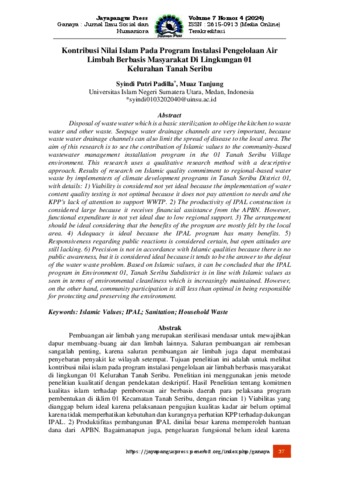 Padilla, Syindi Putri (2024) Kontribusi Nilai Islam Pada Program Instalasi Pengelolaan Air Limbah Berbasis Masyarakat Di Lingkungan 01 Kelurahan Tanah Seribu. Jayapangus Press Ganaya : Jurnal Ilmu Sosial dan Humaniora.
