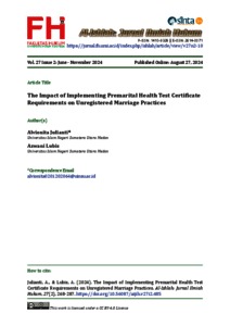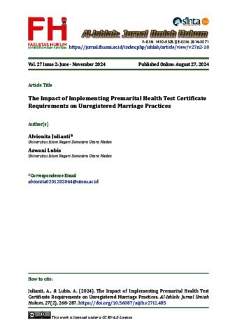 Julianti, Alvionita The Impact of Implementing Premarital Health Test Certificate Requirements on Unregistered Marriage Practices. Jurnal Ilmiah Hukum.