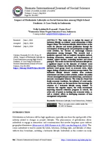 Damanik, Nelly Syahfitri Br (2024) Impact of Hedonistic Lifestyle on Social Interaction among High School Students: A Case Study in Indonesia. Ilomata International Journal of Social Science, 5 (3).