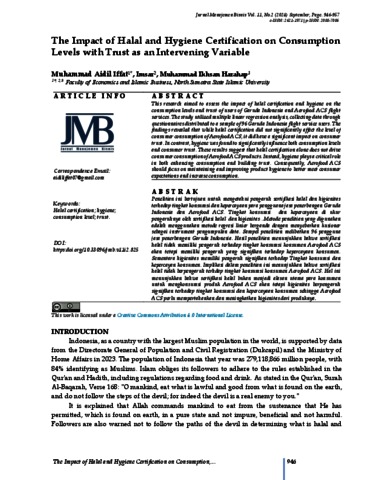 Iffat, Muhammad Aidil (2024) The Impact of Halal and Hygiene Certification on Consumption Levels with Trust as an Intervening Variable. Jurnal Manajemen Bisnis.