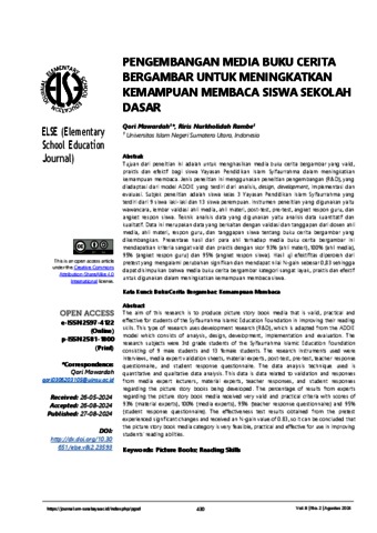 Mawardah, Qori (2024) Pengembangan Media Buku Cerita Bergambar Untuk Meningkatkan Kemampuan Membaca Siswa Sekolah Dasar. ELSE (Elementary School Education Journal).