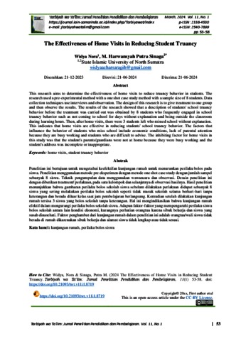 Nora, Widya The Effectiveness of Home Visits in Reducing Student Truancy. Tarbiyah wa Ta’lim: Jurnal Penelitian Pendidikan dan Pembelajaran.