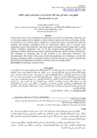 خيرنساء, أرفهمي تطبيق كسر الجليد في تعلم اللغة العربية لزيادة التركيزعلى التعليم الطالب مدرسة إعدادية فوساكا. مجلةالتعليم، المجلد ،05 العدد. 04 مايو-أغسطس.