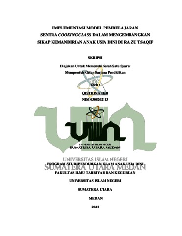 Qisthina Hsb, Qisthina Hsb (2024) Implementasi Model Pembelajaran Sentra Cooking Class Dalam Mengembangkan Sikap Kemandirian Anak Usia Dini Di Ra Zu Tsaqif Mplementasi Model Pembelajaran Sentra Cooking Class Dalam Mengembangkan Sikap Kemandirian Anak Usia Dini Di Ra Zu Tsaqif. Skripsi thesis, Universitas Islam Negeri Sumatra Utara.