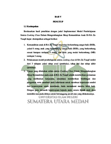 Implementasi Model Pembelajaran Sentra Cooking Class Dalam Mengembangkan Sikap Kemandirian Anak Usia Dini Di Ra Zu Tsaqif Mplementasi Model Pembelajaran Sentra Cooking Class Dalam Mengembangkan Sikap Kemandirian Anak Usia Dini Di Ra Zu Tsaqif